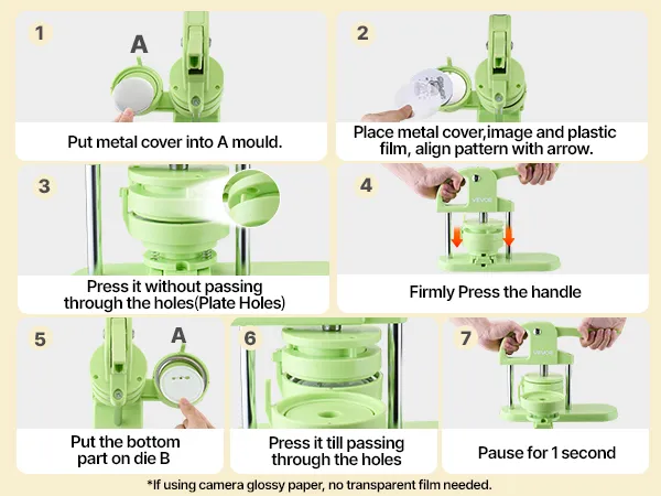 You can align the center of your design with the mold using the guide marks on the button pin maker, helping avoid issues like off-center images or slanted text and improving the overall success rate.