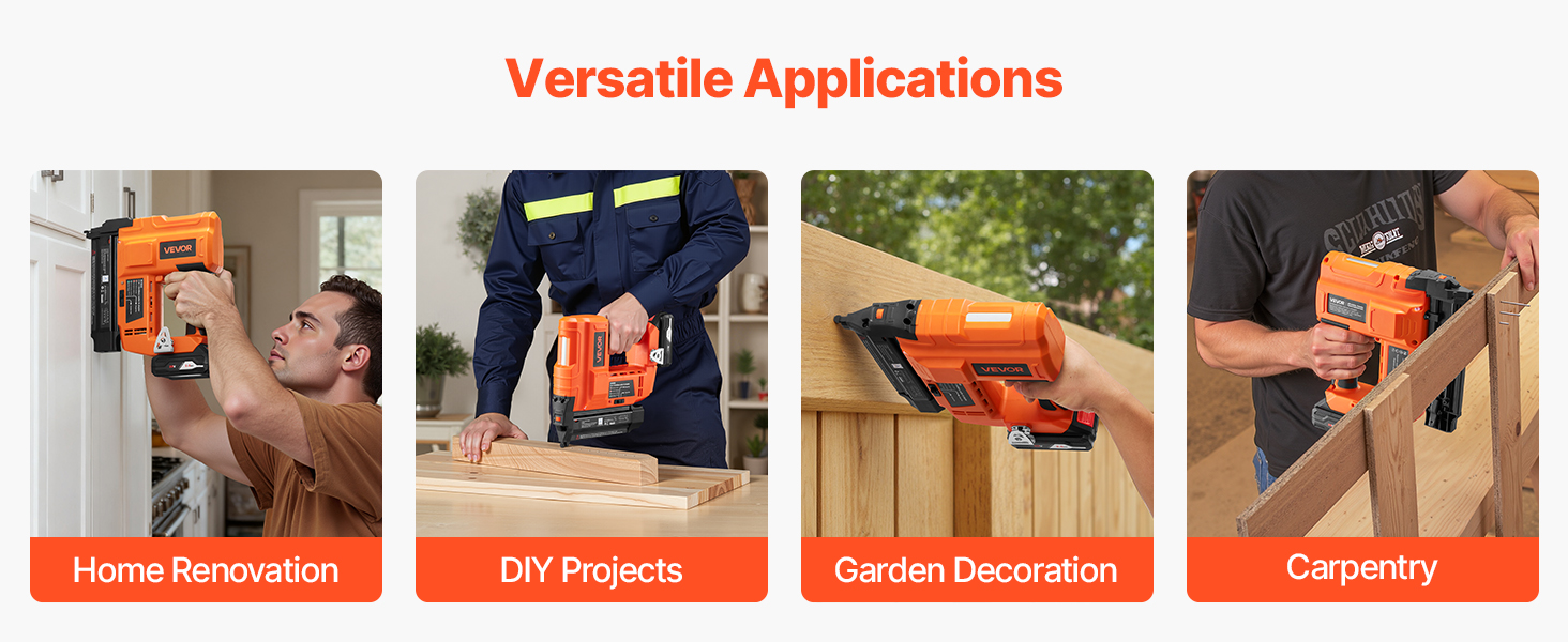Our 20V brad nailer is suitable for interior renovation, furniture making, and woodworking projects. Whether you are a contractor, carpenter, or DIY enthusiast, it is your ideal choice.