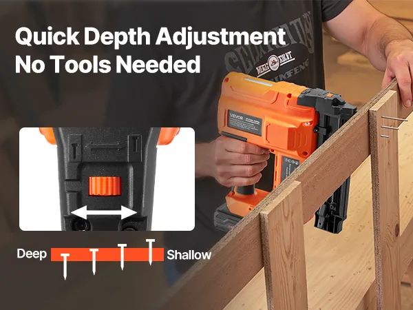 Easily fine-tune the nail depth with a simple turn of the knob. This 18 gauge brad nailer ensures each nail is driven to the exact depth you need, achieving precise results with minimal effort.