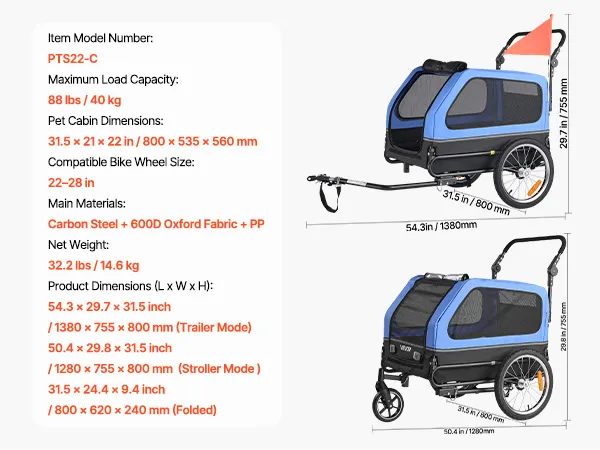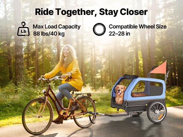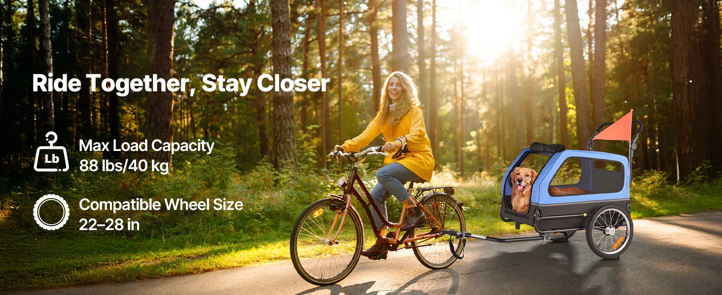 VEVOR Dog Bike Trailer, Supports up to 40 kg, 2-in-1 Pet Stroller Cart Bicycle Carrier for Small & Large Dogs, Easy Folding Frame with Quick Release Wheel, Universal Bicycle Coupler, Internal Leash
