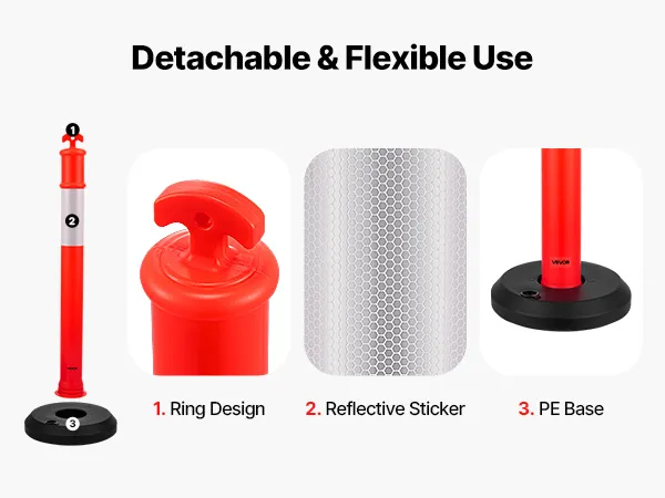 • High Visibility: Featuring high-intensity 360° reflective strips, the traffic delineator posts ensure high visibility even in low light, foggy conditions, or strong glare. It allows pedestrians, vehicles, and construction workers to identify the posts promptly, enhancing security during work or traffic diversion