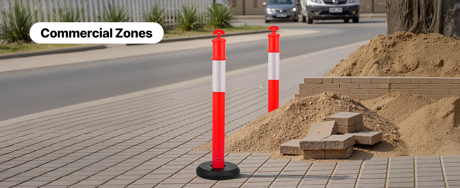 • Versatile Applications: Widely suitable for road construction sites, garage entrances, commercial parking spaces, and crowd control areas. By connecting the delineator posts with chains or placing them individually, you can quickly create a security zone or guide pathway