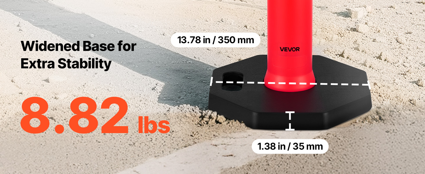 VEVOR 2 Pack Traffic Delineator Posts, 1140 mm Traffic Safety Cones with Weighted Base and Reflective Strips, Heavy Duty Delineator Posts for Construction Site, Parking Lot, Crowd Control, Red