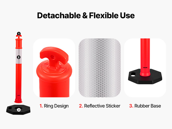 The delineator posts feature bright colors and 360°reflective strips design, ensuring enhanced security for nighttime road warnings. Its detachable design allows for easy storage in emergency vehicles or for large-scale transportation, making it readily accessible when needed.