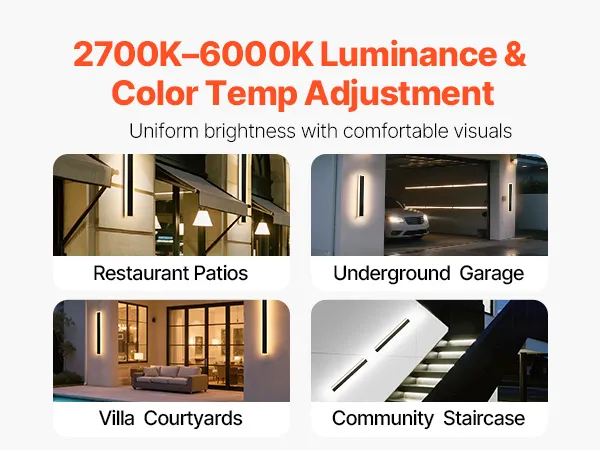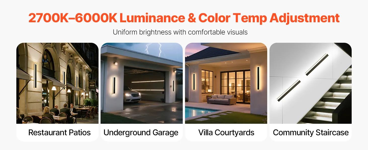 Our exterior wall light has 2700K-6000K adjustable color temperature and warm to cold light, with wide-area adjustment. Illuminating a wide range of spaces in garages, staircases, and more. Creating a personalized ambiance while meeting residential or commercial lighting needs.