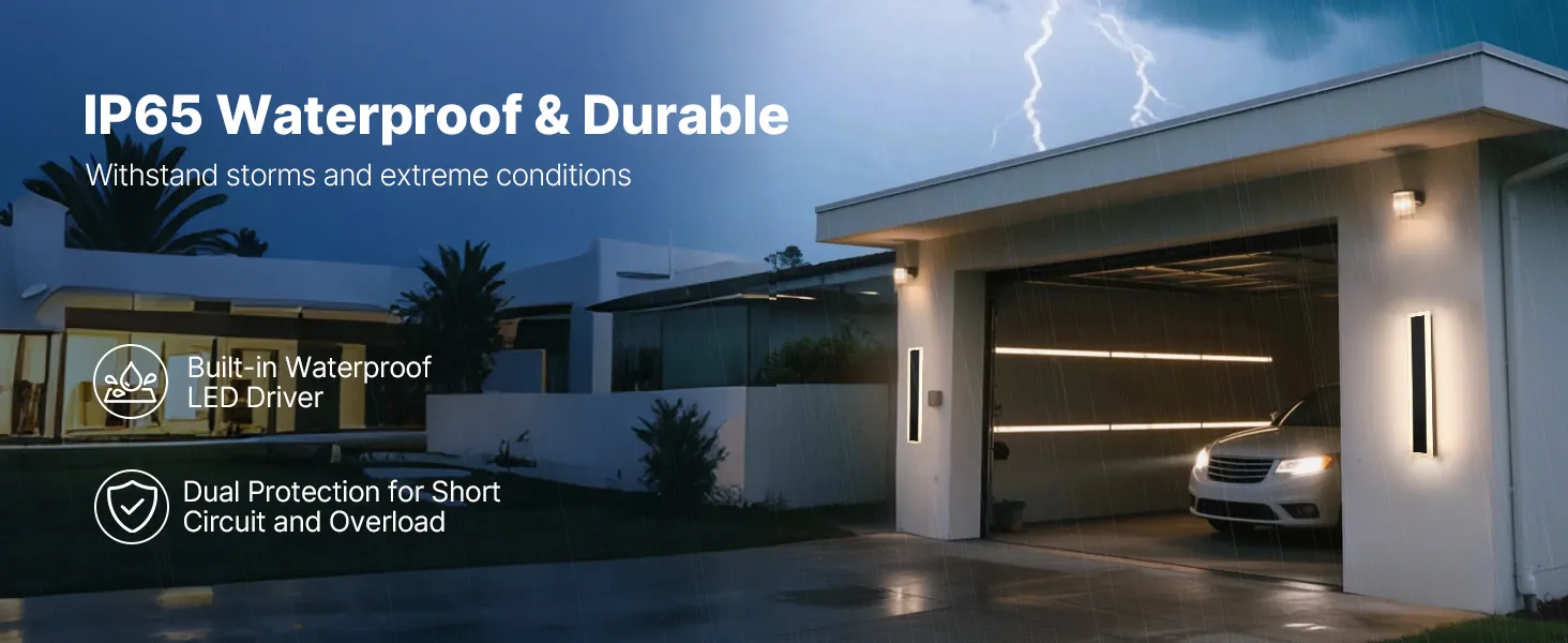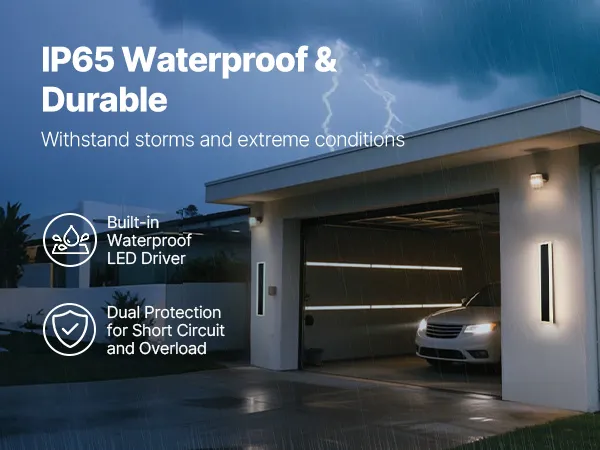 With IP65 waterproof, our outdoor wall light fixture has excellent waterproof and airtight performance, withstanding extreme weather conditions like storms and strong winds. Built-in waterproof LED driver features short-circuit and overload protection, ensuring reliable operation.