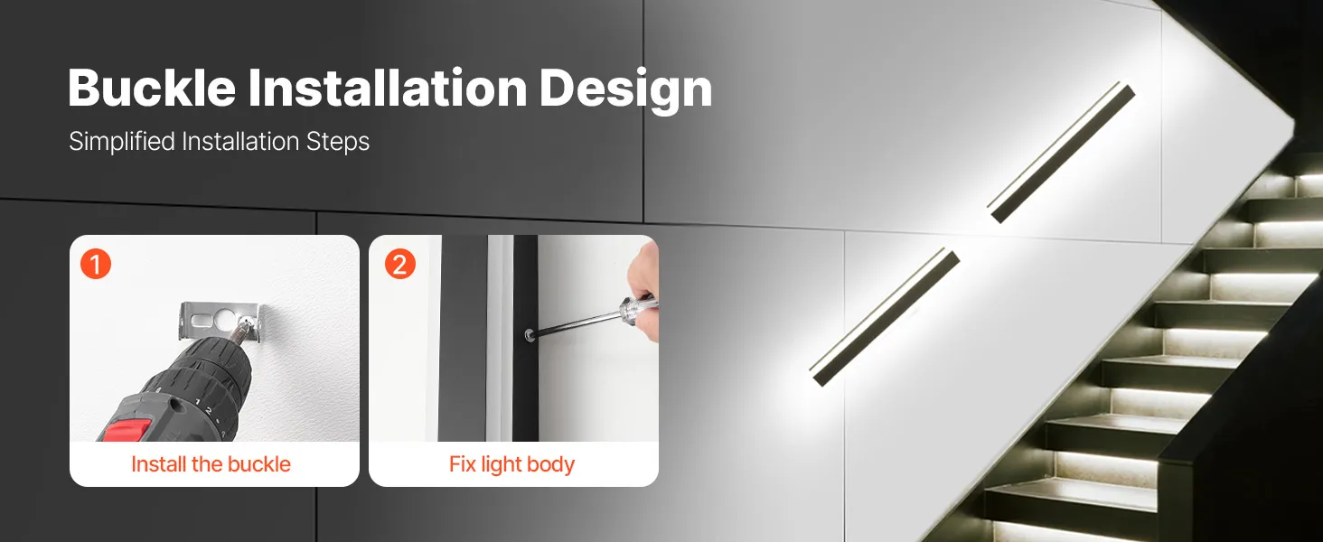 This outdoor wall sconce features pre-grooved wiring channels and buckle installation. First, organize wiring within channels, then fix the light body through the buckle. The two-step process simplifies complex operations and is suitable for various outdoor installations.