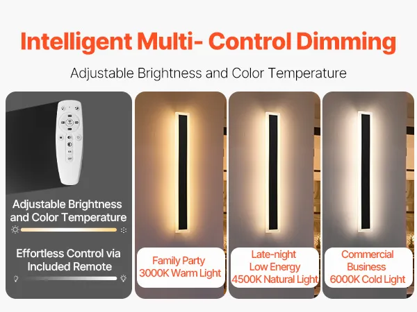 Our outdoor light fixture wall mount includes a remote control for easy brightness and color temperature adjustment. Infusing character and vibrancy into multiple scenarios: warm ambiance for gatherings, energy-saving modes at night, or cool lighting for commercial signage visibility.