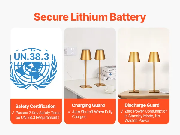Профессиональная конструкция с дополнительными ограничивающими и фиксирующими устройствами обеспечивает устойчивость аккумуляторной лампы. Даже при частом подключении и отключении от сети основание абажура остается надежным, предотвращая появление вмятин или отсоединение.