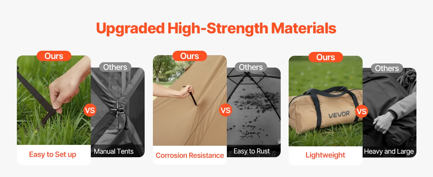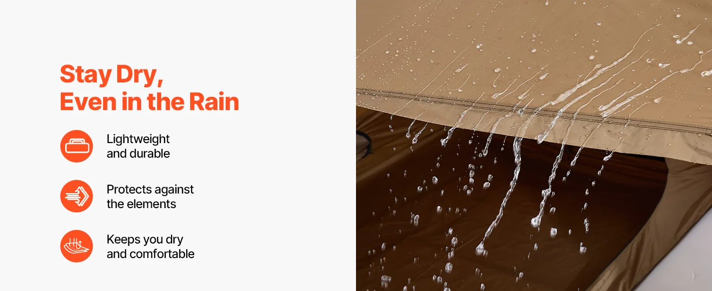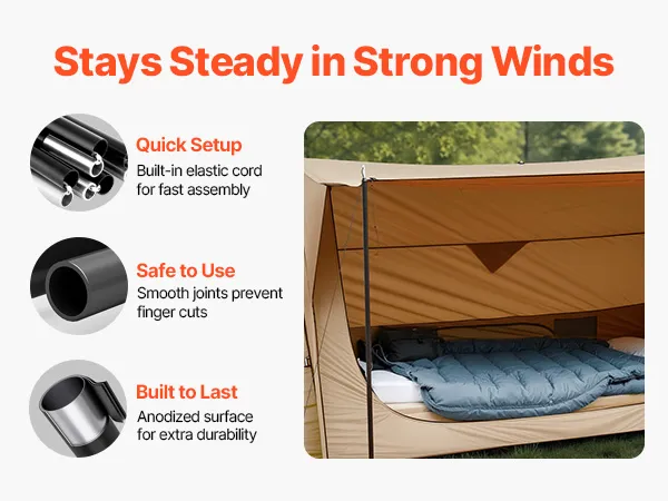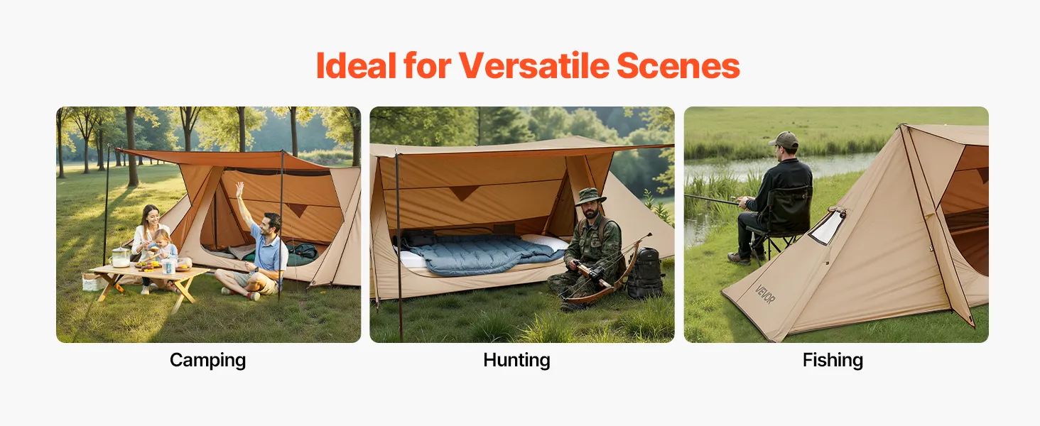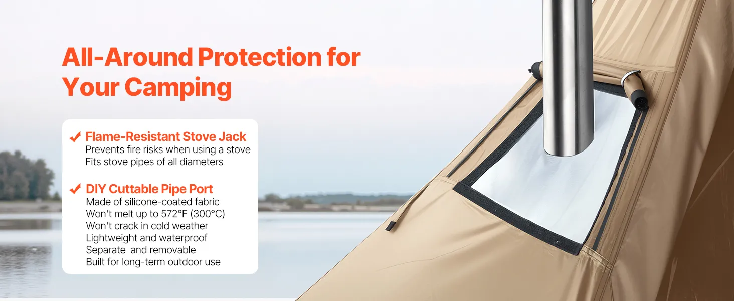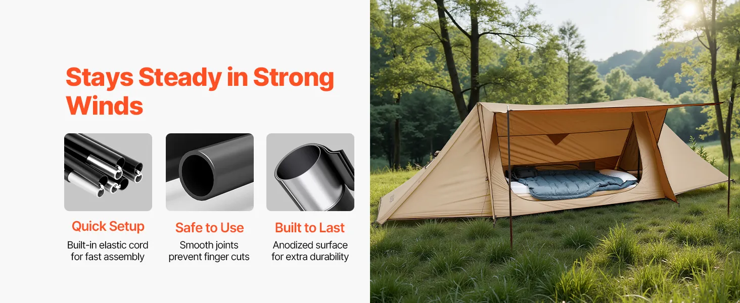 Experience the hot tent with poles—designed for outdoor campers who prioritize safety and comfort. Reinforced support poles provide strong wind resistance, making it reliable in challenging weather. The spacious room offers ample room for families cooking, resting, and socializing.