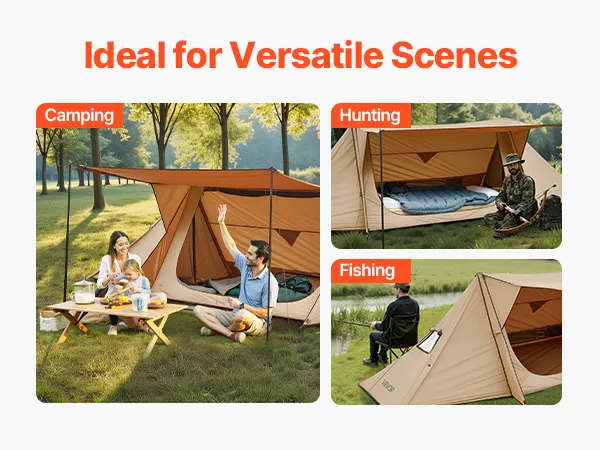 VEVOR Camping Hot Tent, Lightweight Bushcraft Tent with Stove Jack & 2 Tarp Poles, Waterproof Winter Hot Tents Shelters, Portable 4 Season Tents for 2 Persons Hiking Fishing Hunting Backpacking