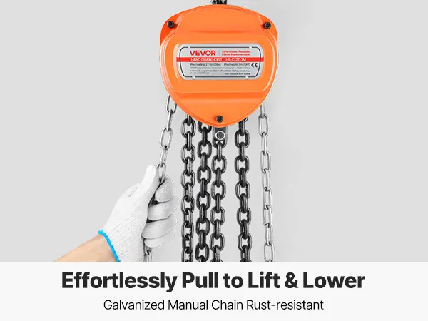• Effortless Operation: Compact and user-friendly, this manual chain block hoist only requires 340N of pull force when fully loaded. The deep groove design keeps the chain secure, saving time on repairs and making lifting easy