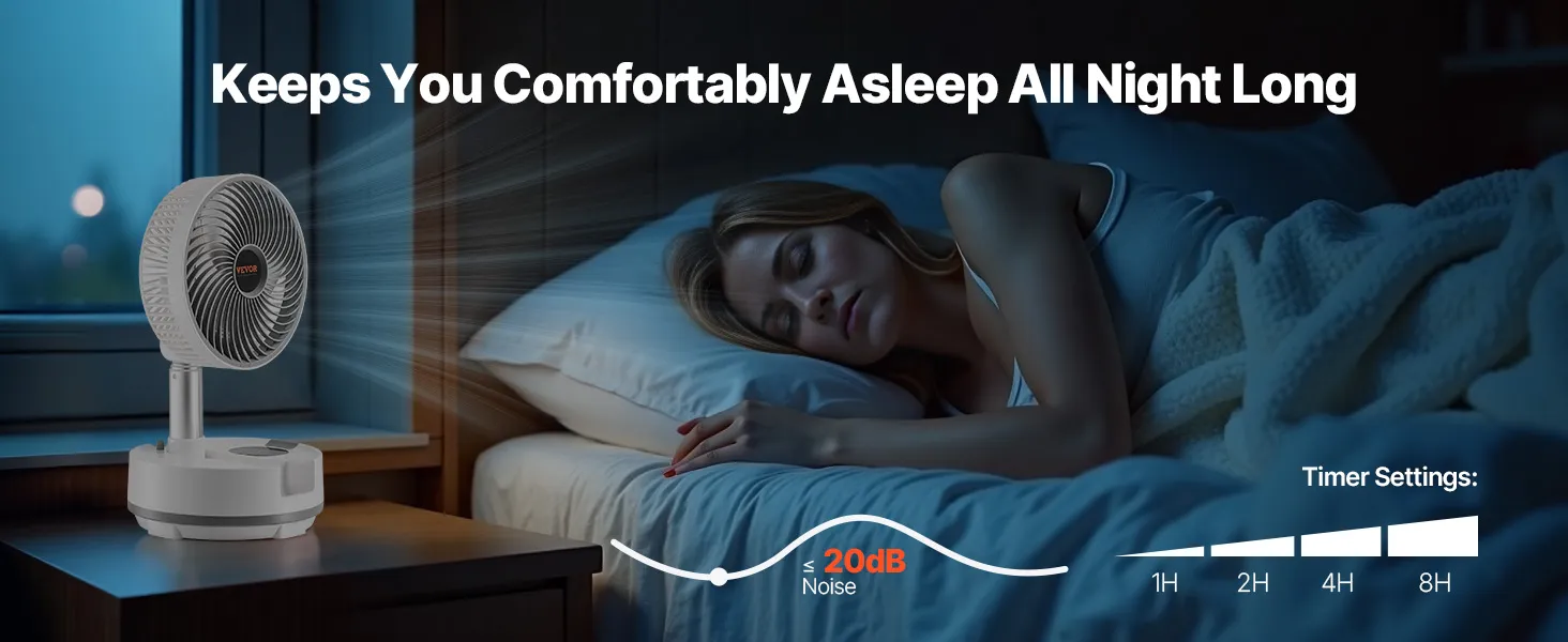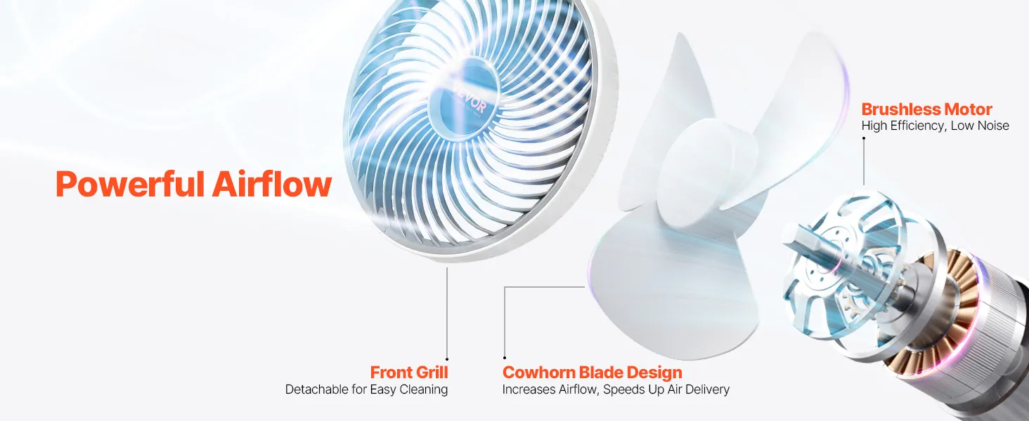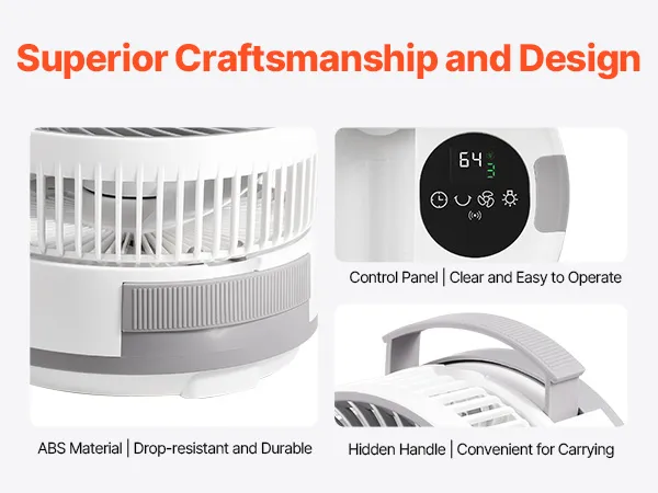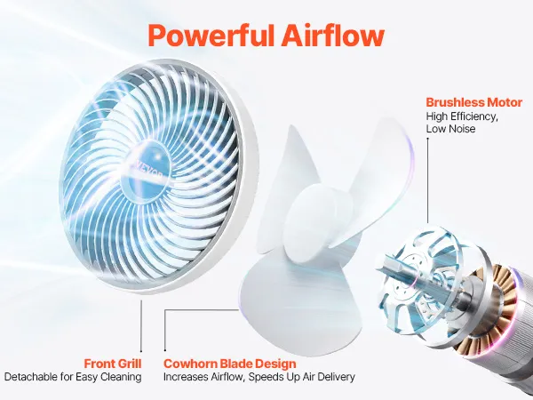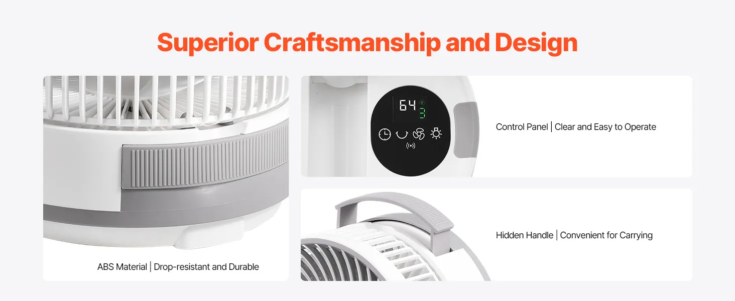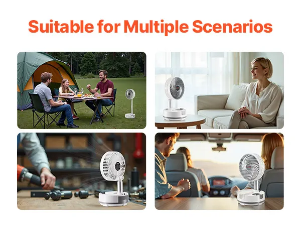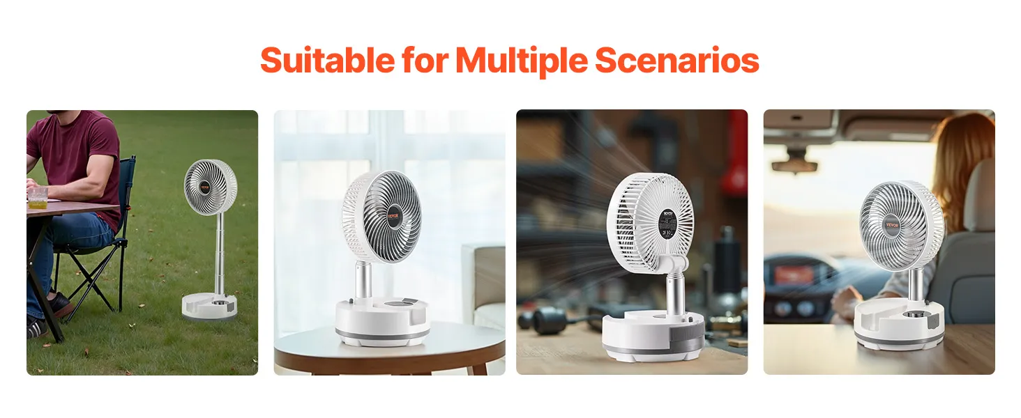 • Adjustable Height: This desk fan features flexible height adjustment ranging from 5.5 inches to 22.8 inches, easily adapting to various scenarios. Whether on a desk, bedside, or during outdoor activities, it provides the ideal cooling experience. The hidden handle design makes the fan easy to carry
