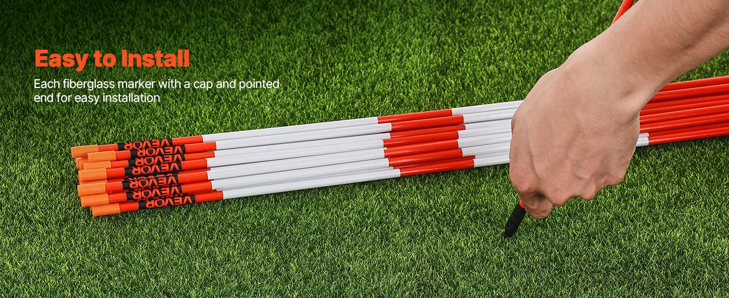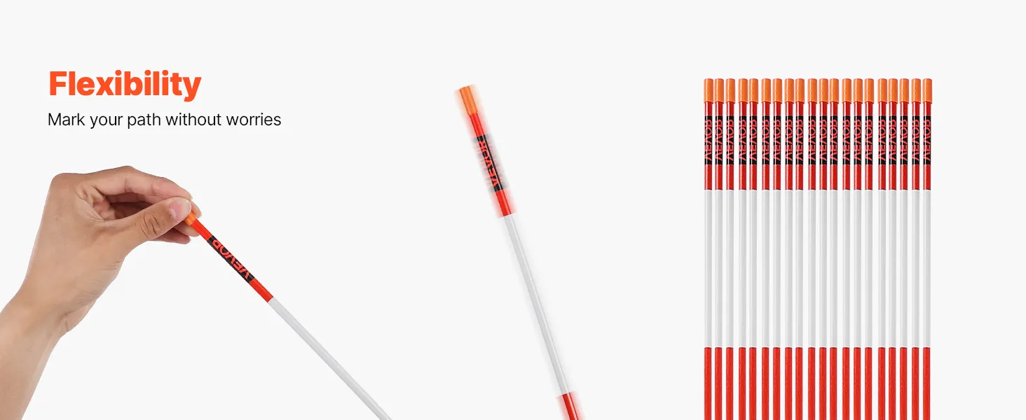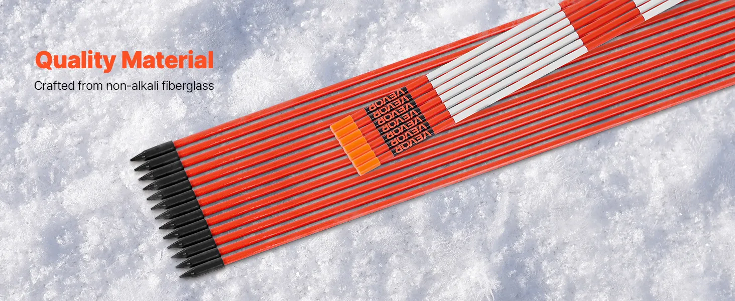 VEVOR Driveway Markers, 20Pcs 122cm Long 6.35mm Dia, Hi-Visibility Driveway Reflectors with 12 in Steel Drill Bits, Reflective Snow Sticks Fiberglass Pole for Parking Lots, Walkways, Snow Plowing