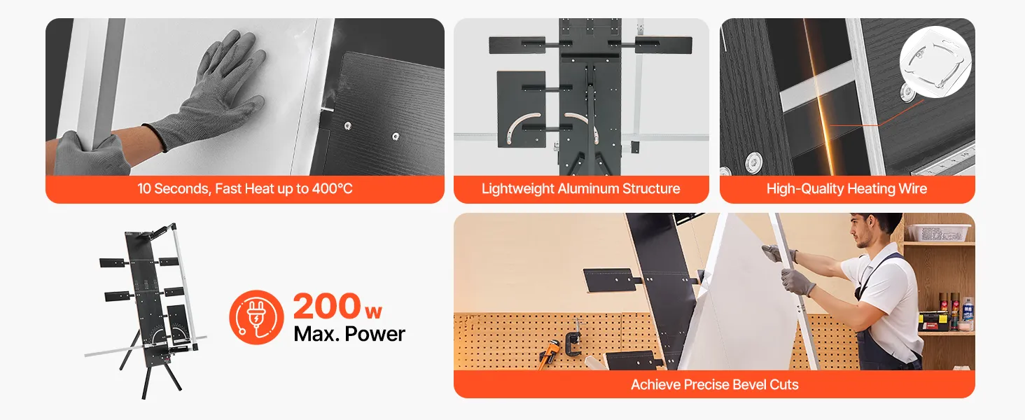 Our 200W hot wire foam cutter delivers rapid heat-up and handles a wide range of materials including foam sheets, polyethylene boards (thickness < 15mm), KT boards, and sponge sheets. It supports straight cuts, surface cuts (separation cuts), step cuts, miter cuts, bevel cuts, and cove cuts.