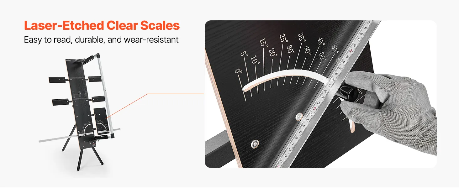 The three-leg stand provides a sturdy foundation, reducing wobble during use and ensuring safer, more accurate cuts.