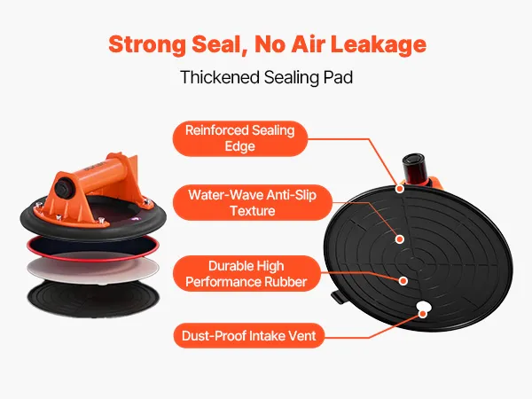 An integrated steel-ball check valve locks air automatically, and a thickened rim boosts sealing. Our glass suction cup reduces leaks, extends hold time, and improves security, efficiency, and durability.