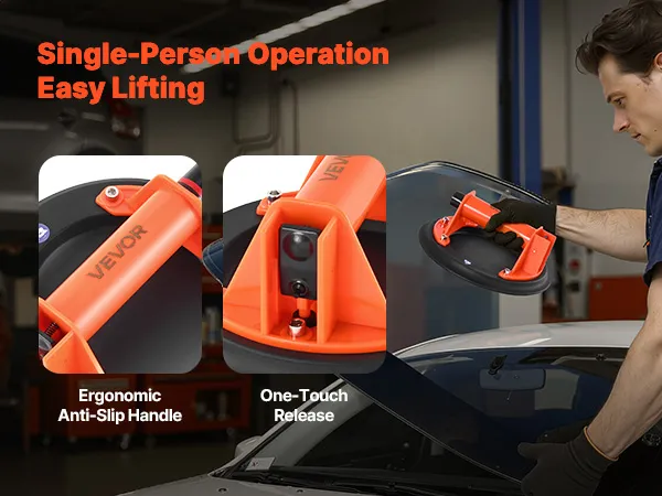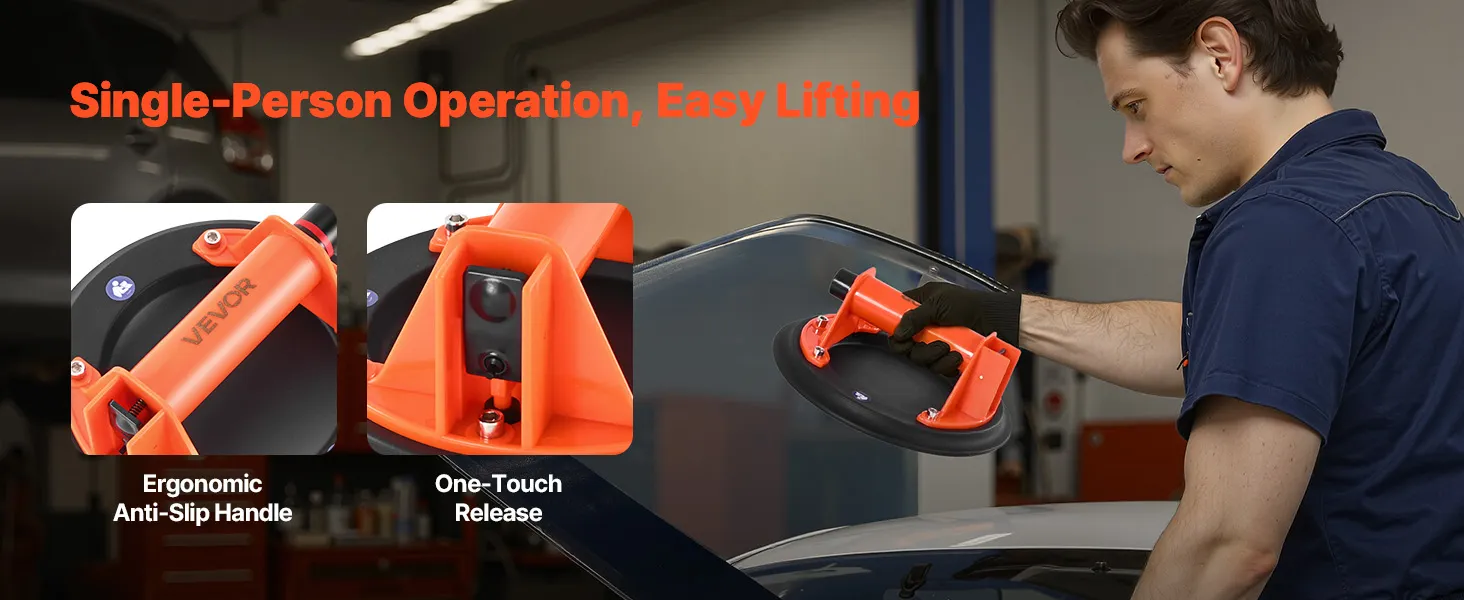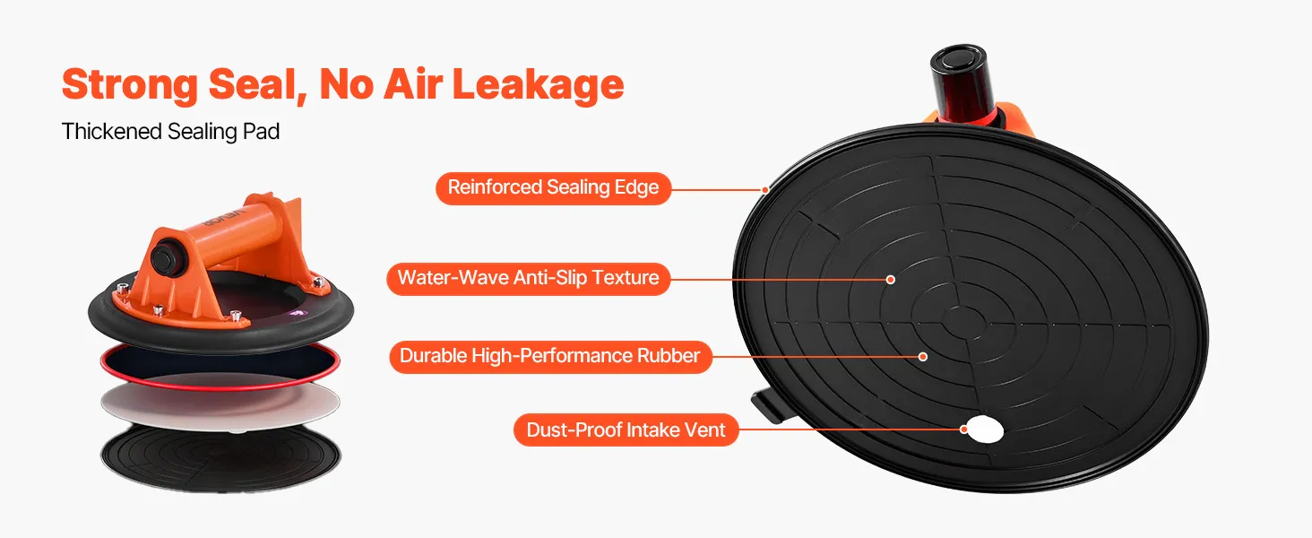 This suction cup lifter delivers firm grip with high-vacuum negative pressure. The pad stays put through light vibration or slight angles, so heavy panels remain steady for more secure handling.