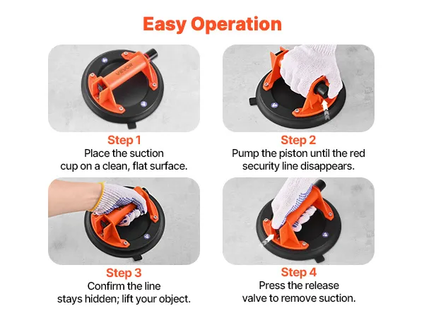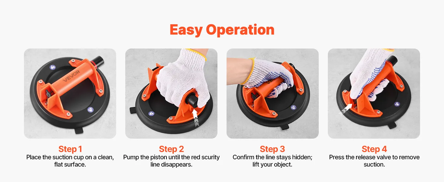 You align the cup, press the pad, and pump to vacuum. The tile suction cup tool needs no tricky setup or extra gear, so new or occasional users start fast and keep projects moving.