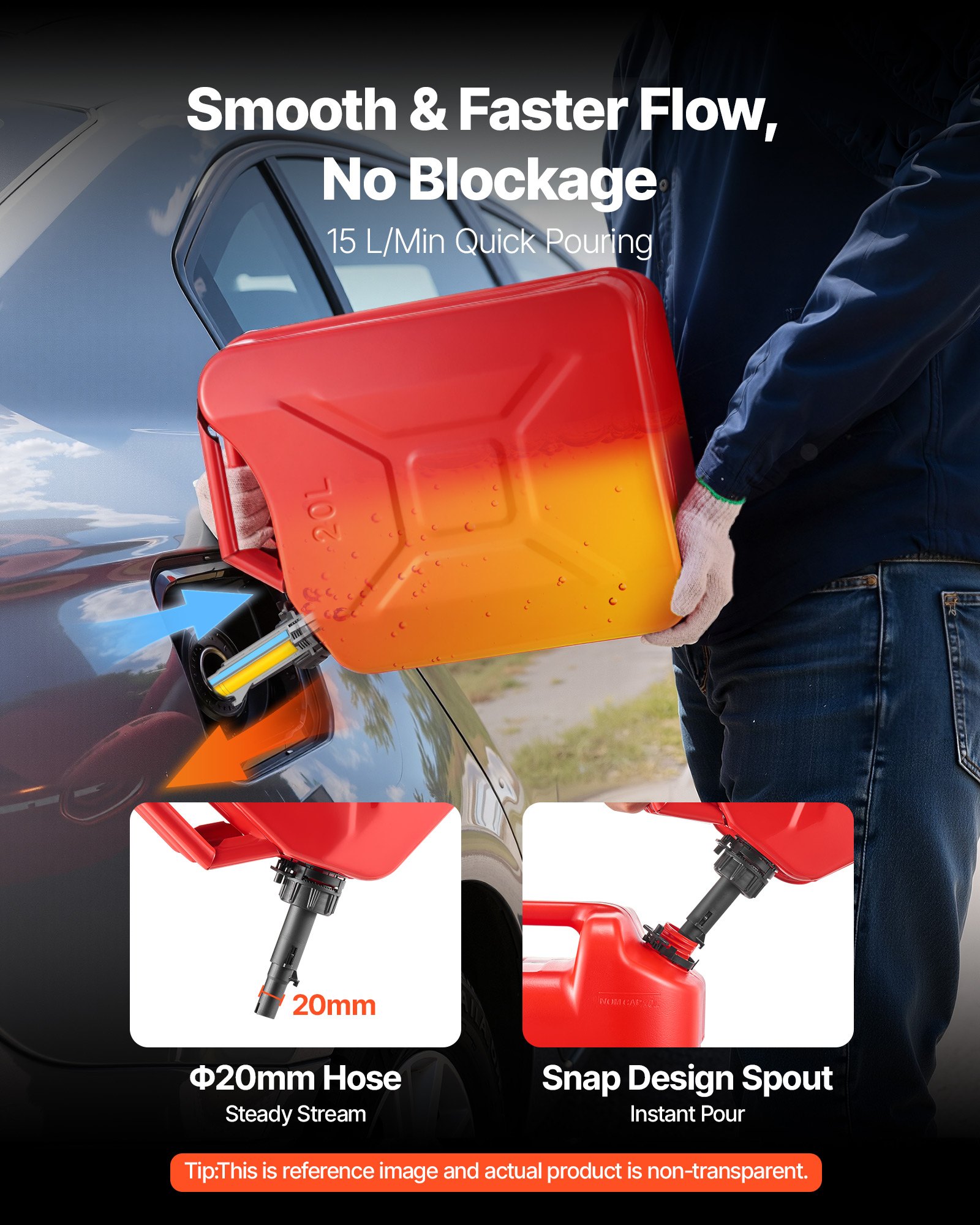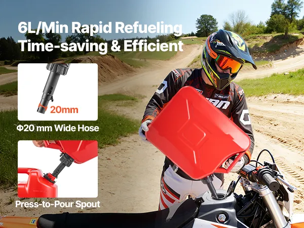 • Smooth 6 L/min Fast Flow: Hate slow, messy refills? This metal jerry can delivers up to 6 L/min with a wide 20 mm hose and snap spout, giving you smooth, splash-free pours without the annoying “glug”
