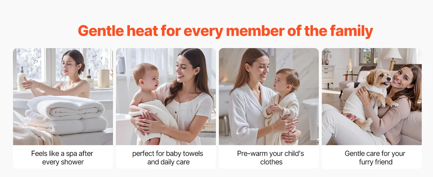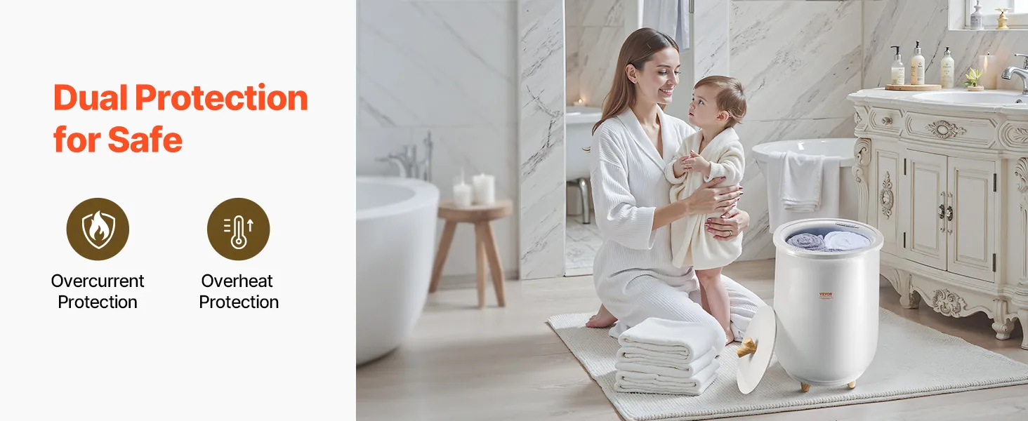 Experience fast heating and smart security with our towel warmer bucket—designed to deliver cozy, warm towels for the whole family. Its large capacity heats multiple towels at once, while V0 flame-retardant materials ensure peace of mind.