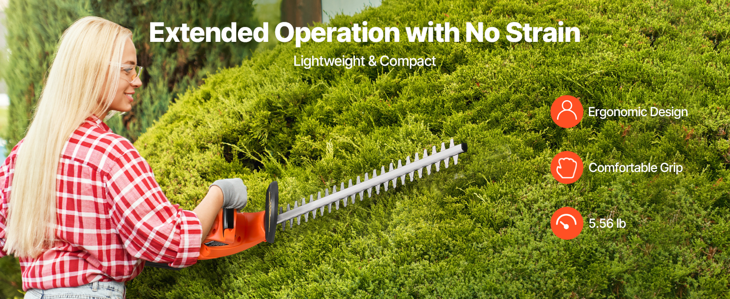 Наслаждайтесь длительными сеансами стрижки с легкостью! Этот электрический триммер весом всего 5,56 кг, эргономичным дизайном и удобной рукояткой облегчает выполнение любой садовой задачи и избавляет от стрессов, помогая вам создать сад вашей мечты.