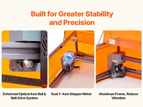 • High-Precision Engraving: Featuring a 455 nm laser wavelength and fine 0.12 x 0.15 mm laser spot size, this laser engraving machine is paired with a 32-bit control board for accurate control. The aluminum frame minimizes vibration for smooth edges
