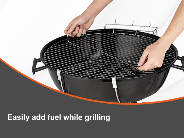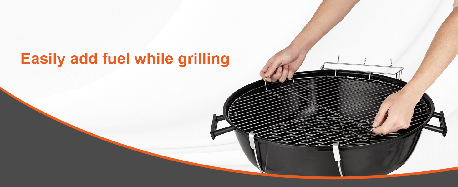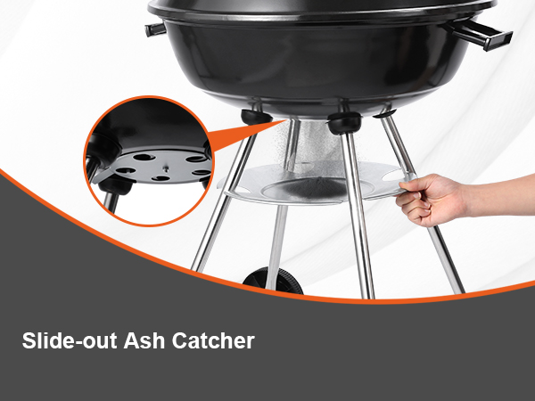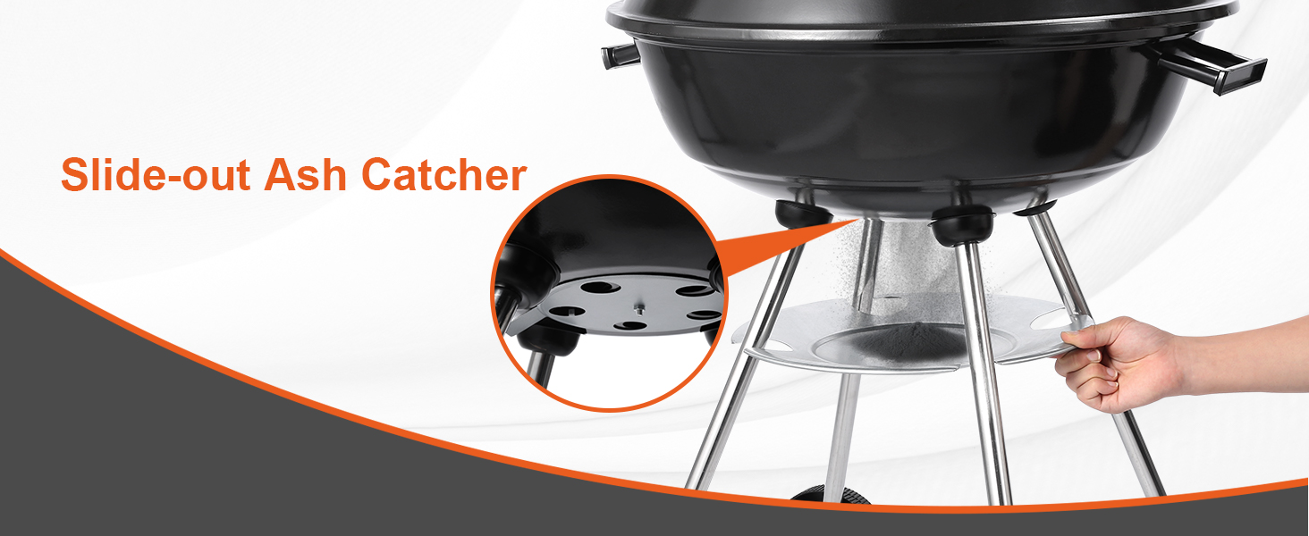 Remove the charcoal ash and debris by swiping it into a high-capacity, removable ash catcher.