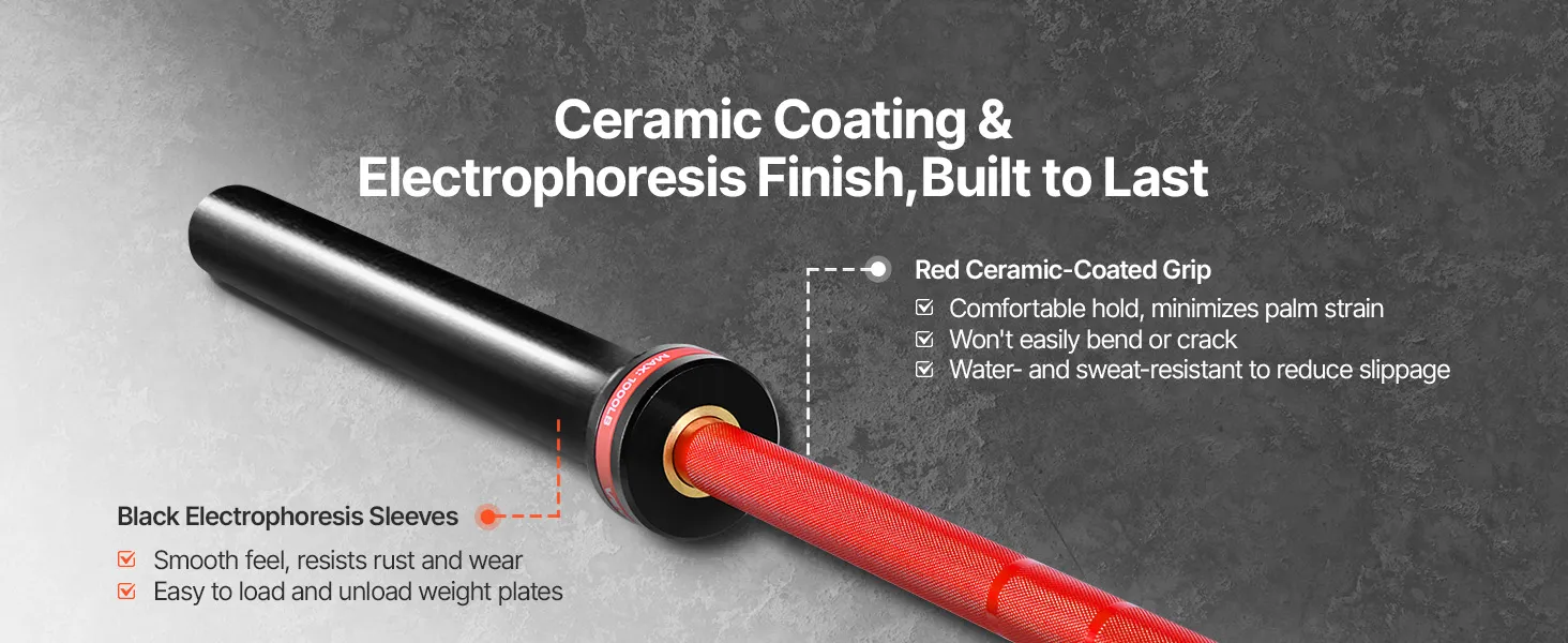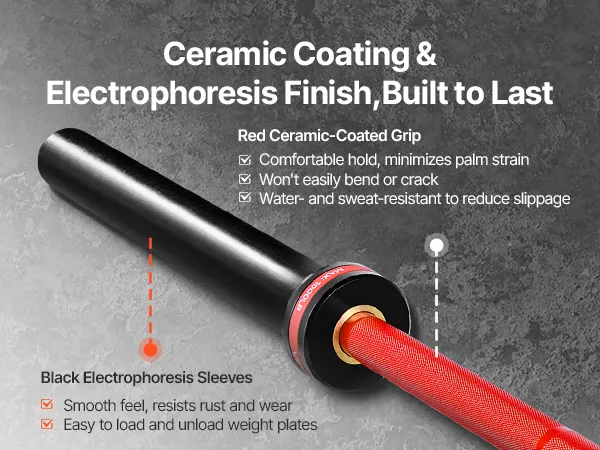 The black electroplated sleeves allow easy, quiet plate loading, while the red ceramic-coated handle provides a comfortable, sweat-resistant, and slip-resistant grip. Its rust- and wear-resistant finish enhances durability and extends service life.