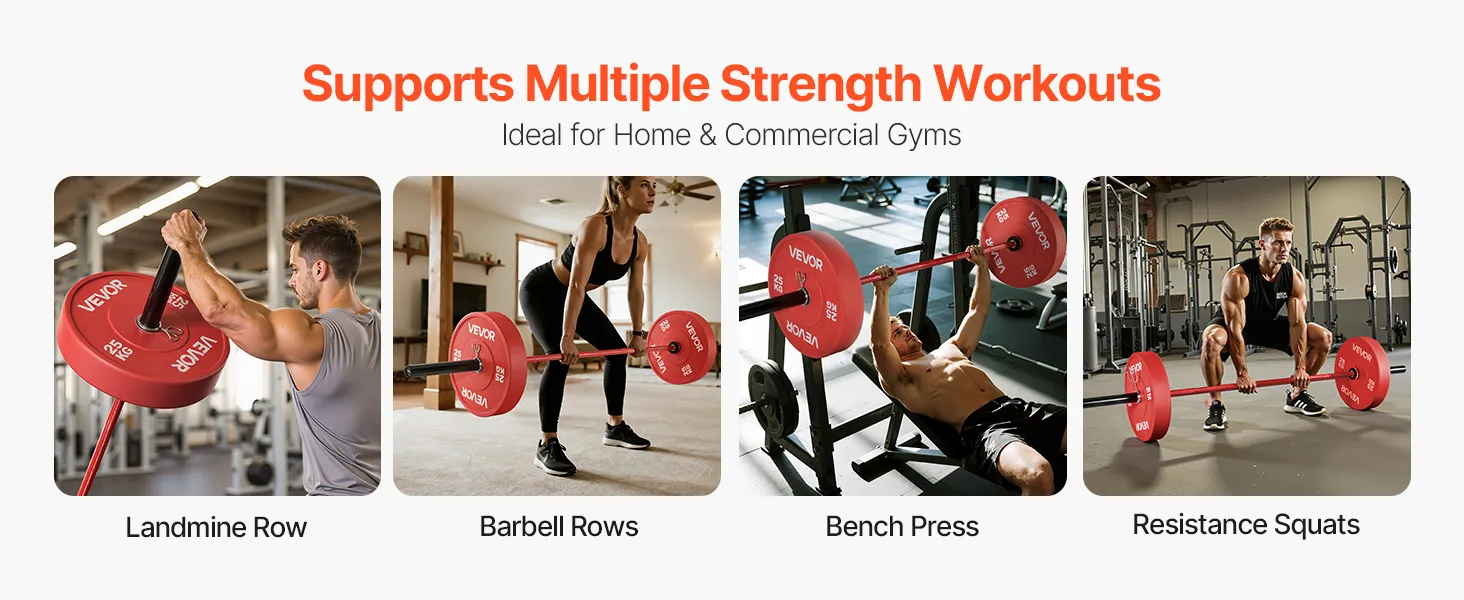 This barbell bar is suitable for a wide range of exercises, including landmine rows, barbell rows, bench presses, and resistance squats. Whether for muscle building, shaping, or strength gains, it is ideal for home gyms and professional training.