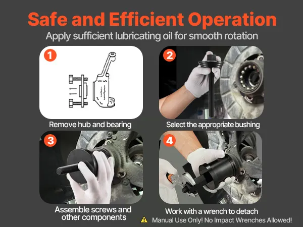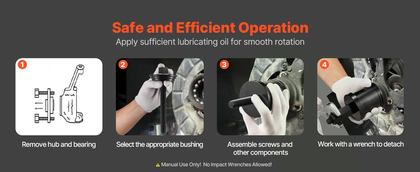Designed for bearing removal without damaging other car parts, this wheel bearing puller allows for secure and efficient disassembly by twisting the top with a wrench, reducing the need for hammering and front alignment.