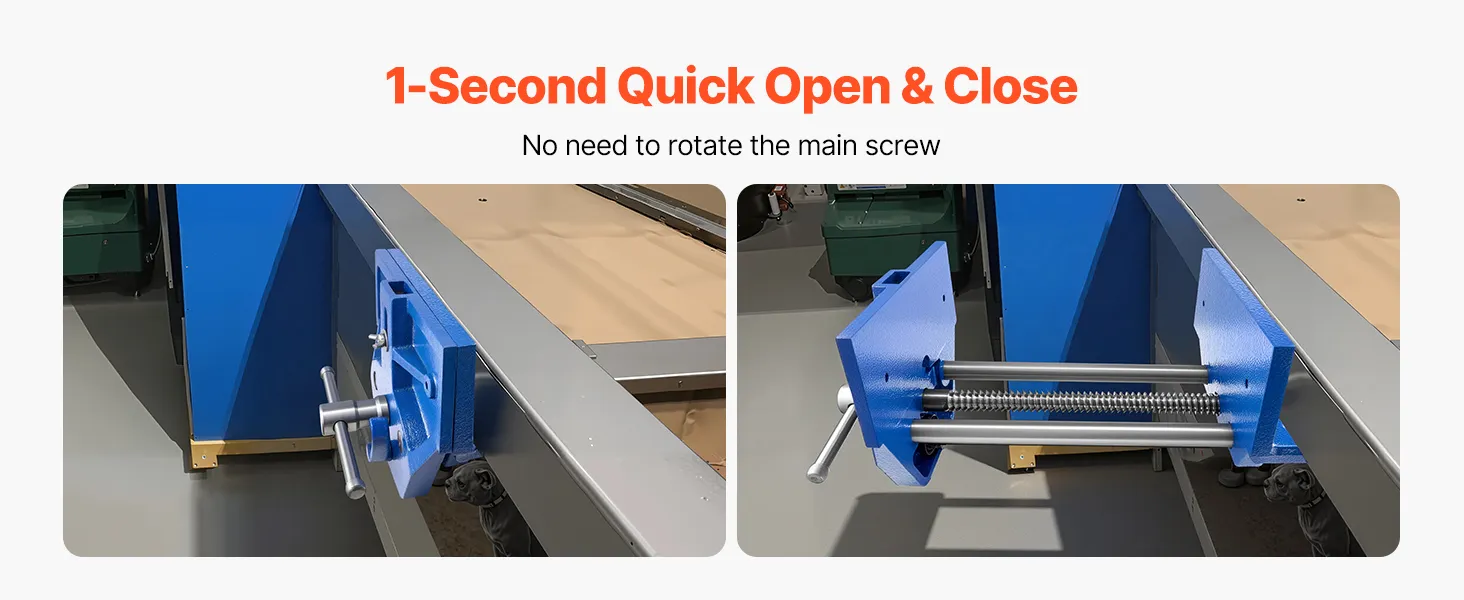 The workbench vise adopts a 1-second quick open and close design, with no need to rotate the main screw, saving time and effort. It has a quick-install setup, and you can easily mount the vise to your workbench for convenient use.
