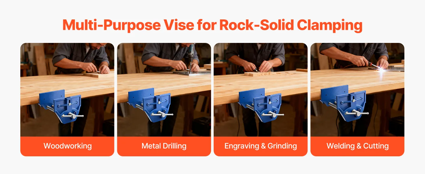 This work bench vise is suitable for woodworking, metal drilling, carving, grinding, welding, and cutting. A versatile tool for various workshop needs.