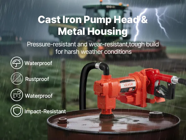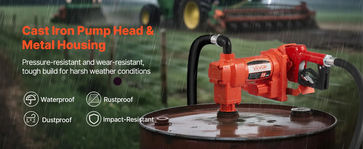 Made of high-strength cast iron for good pressure resistance, wear resistance, and corrosion protection. This oil transfer pump is waterproof, dustproof, and impact-resistant to withstand harsh outdoor conditions without rusting, warping, or overheating, ensuring years of reliable use.