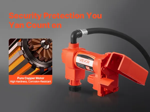 Our electric oil transfer pump is designed with a portable handle for easy transport and storage, a copper motor for durability, a reinforced cast iron housing for impact and corrosion resistance, and a waterproof power switch with multi-layer security protection for peace of mind operation.
