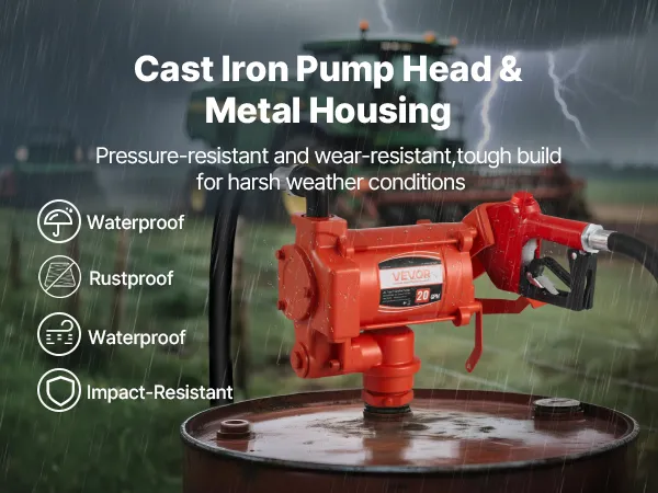 Made of high-strength cast iron for good pressure resistance, wear resistance, and corrosion protection. This oil transfer pump is waterproof, dustproof, and impact-resistant to withstand harsh outdoor conditions without rusting, warping, or overheating, ensuring years of reliable use.