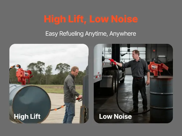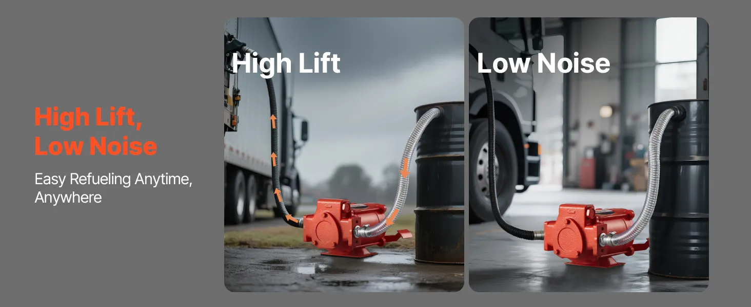 Features an impressive 53 ft (16.15 m) max lift for fueling at elevated points while keeping noise to a minimum. This diesel fuel transfer pump is suitable for night operations or noise-sensitive environments, delivering fuel efficiently without causing disruptions.