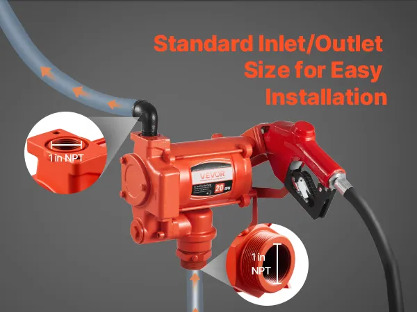 Comes with a standard inlet and outlet size, this diesel transfer pump allows quick setup with various fuel hoses and equipment. Compatible with various types of diesel-powered machinery and storage tanks, making fueling fast and hassle-free.