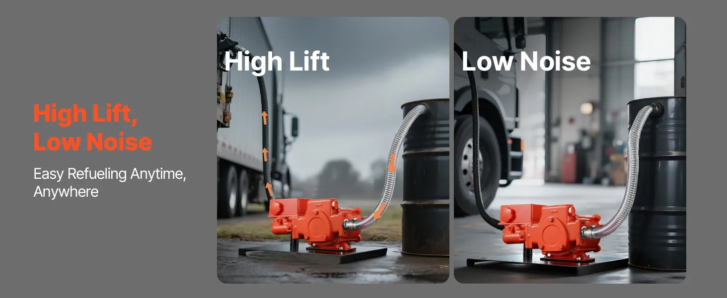 • Wide Diesel Compatibility: Designed for gasoline, diesel, kerosene, and biodiesel. This diesel fuel transfer pump supports various diesel-powered equipment such as trucks, excavators, tractors, farm machinery, generators, and more