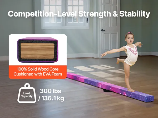 • Professional Beam Mat: Crafted from 100% solid wood with a high-density EVA layer and a maximum weight capacity of 300 lbs / 136.1 kg, this beam offers stable landings with cushioning to reduce joint impact