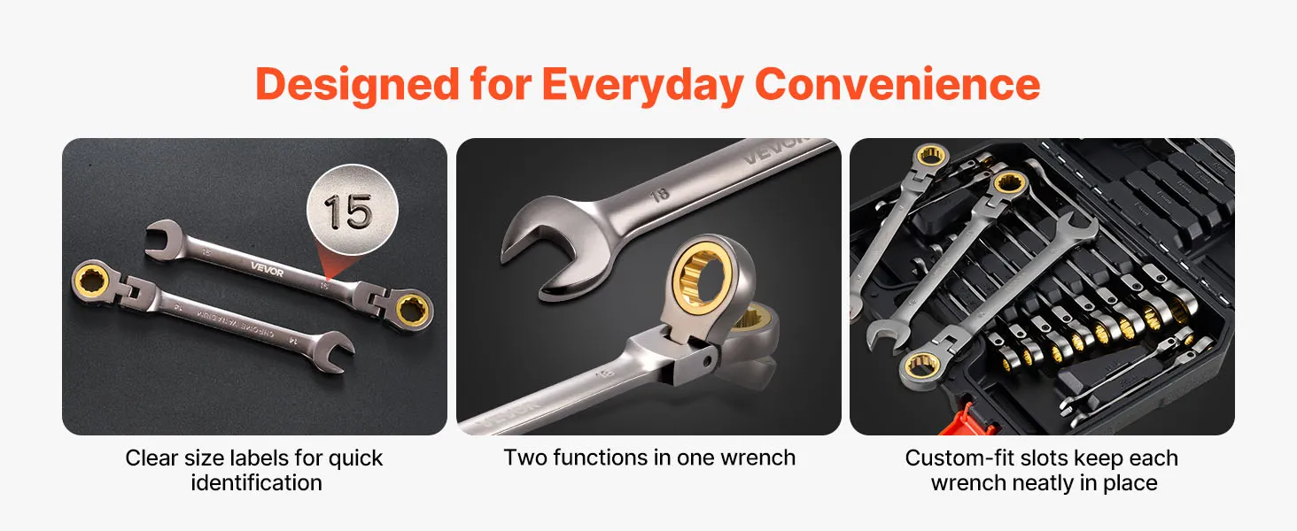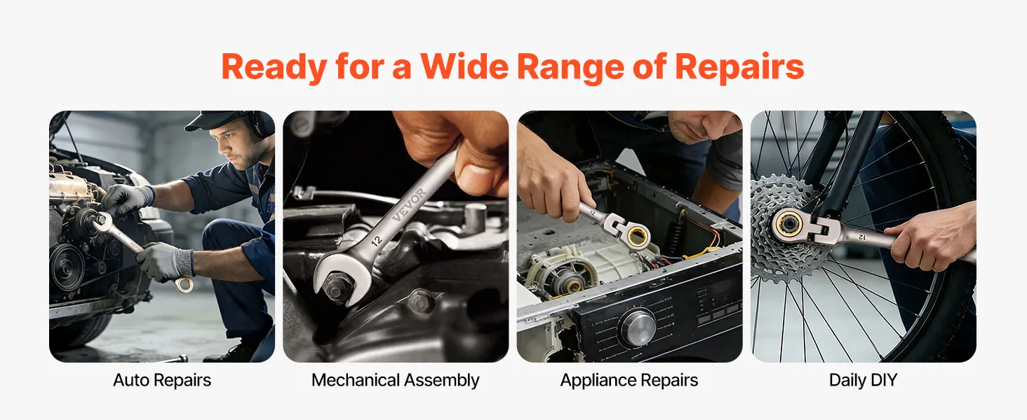 Whether for vehicle maintenance, home appliance repair, or everyday DIY projects, the flex ratcheting wrench set adapts easily to different tasks, making it a dependable partner for routine repairs.