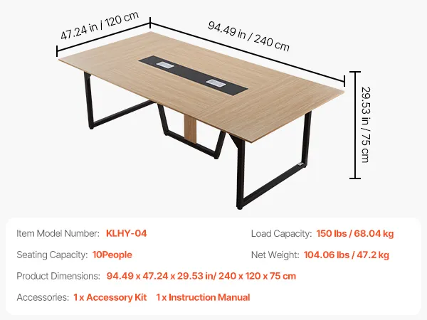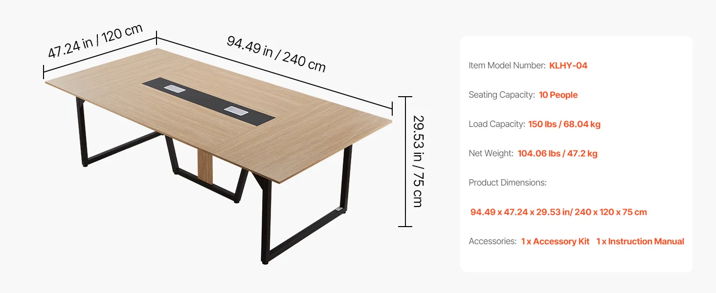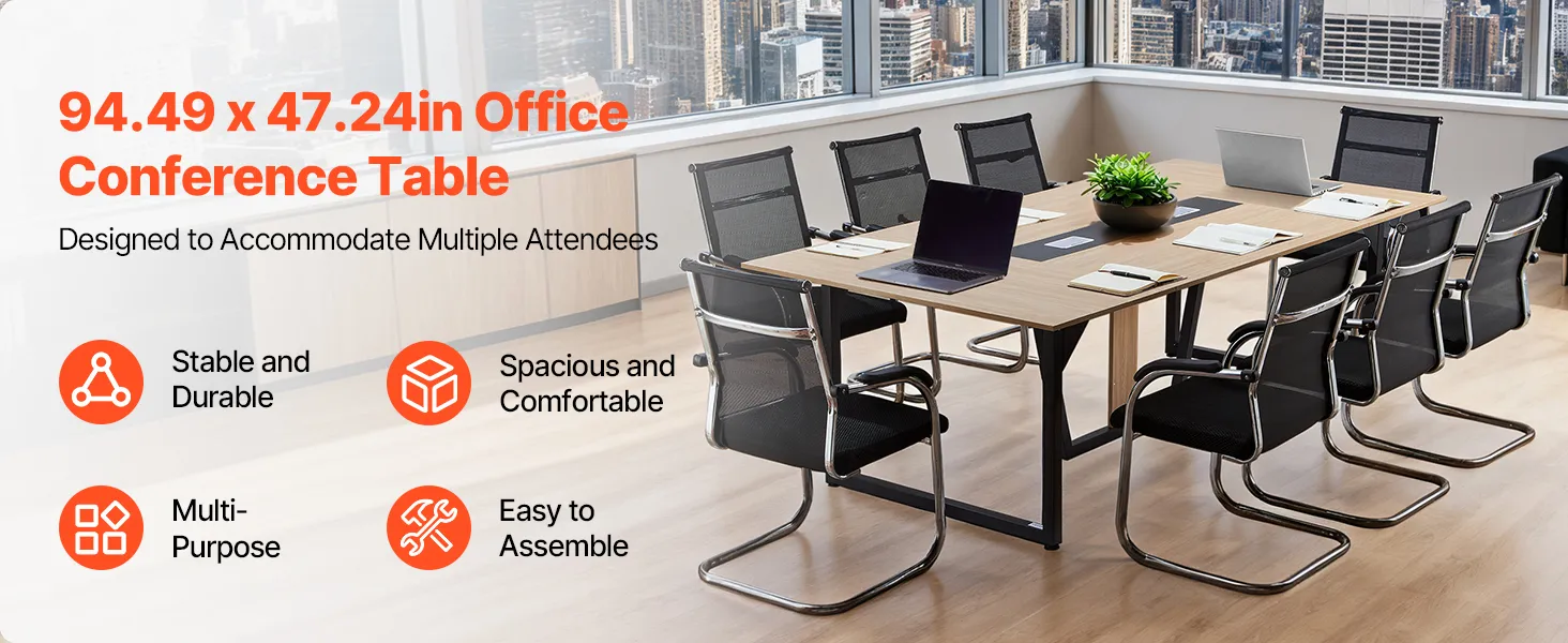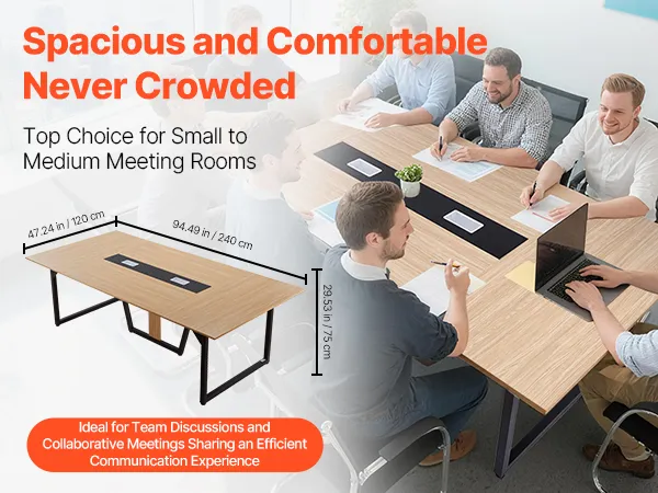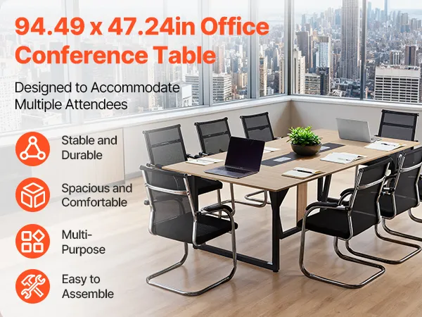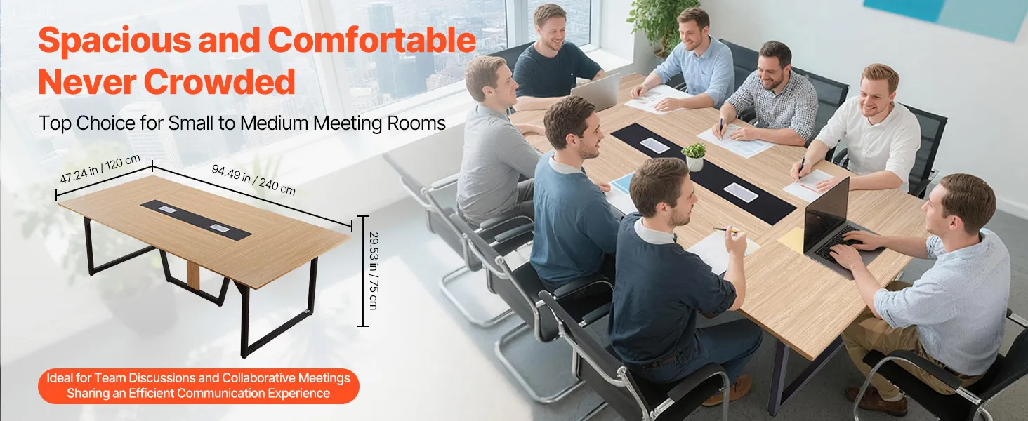 • Comfortable Group Work: With a spacious 94.49 x 47.24 in tabletop, this conference table seats up to 10 person. It provides ample space for team discussions, training, and remote meetings, reducing crowding and creating a more productive environment