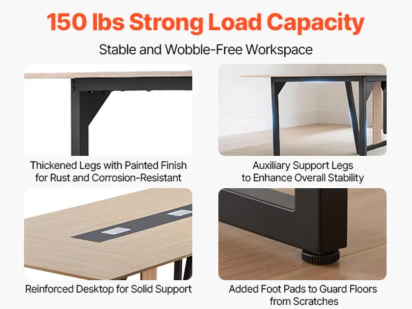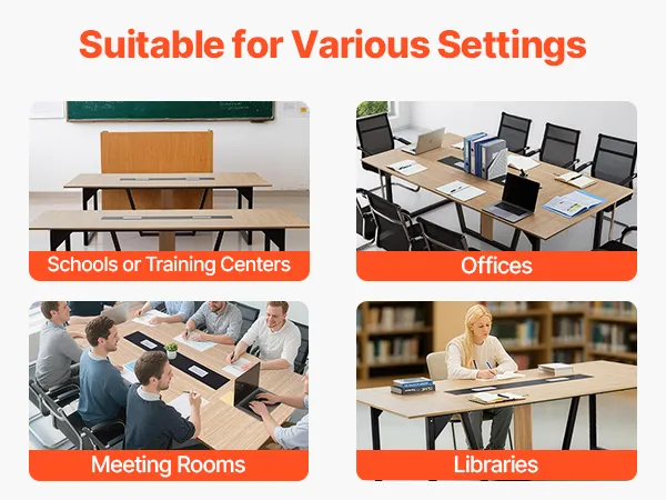 • Thoughtful Design: Scratch-resistant meeting table resists pens and rulers, with cable grommets to keep power and HDMI cords neat. Each leg features foot pads to avoid floor scratches or dents, ensuring peace of mind even in temporary venues