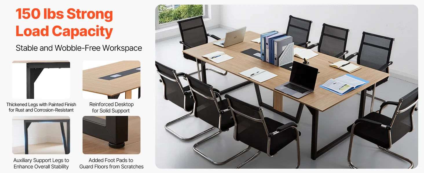 • Sturdy & Durable Build:  Made with a 0.59 in (15 mm) thick particleboard top and reinforced metal legs, this conference room table supports up to 150 lbs. Added crossbeams and an anti-rust coating ensure solid support for stability without wobbling
