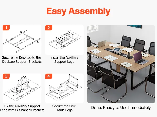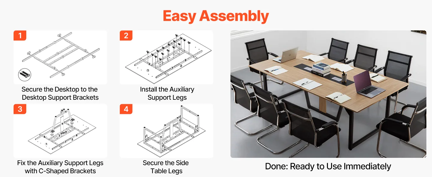 • Easy Assembly: Our office conference table comes with a full set of screws, wrench, and screwdriver, plus a detailed manual. No extra tools needed, even beginners can quickly assemble a sturdy, durable conference table, saving time and effort