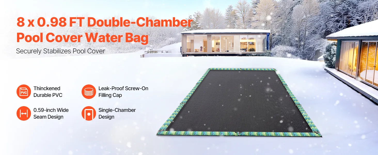 Each 94.49 x 11.81 inch winter pool cover water bag features reflective strips for enhanced nighttime visibility and added security. Designed to hold your pool cover in place during winter, these bags prevent leaves and debris from entering the pool—keeping it clean and cutting down on maintenance.