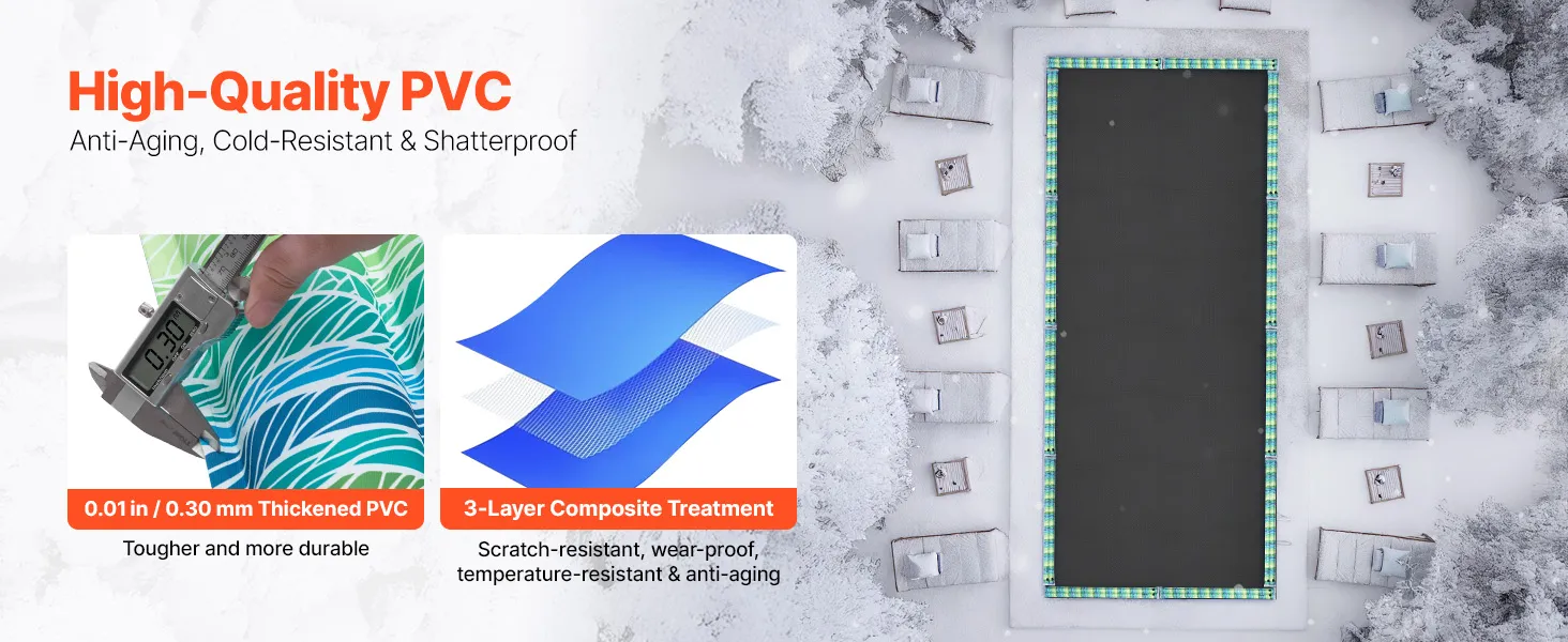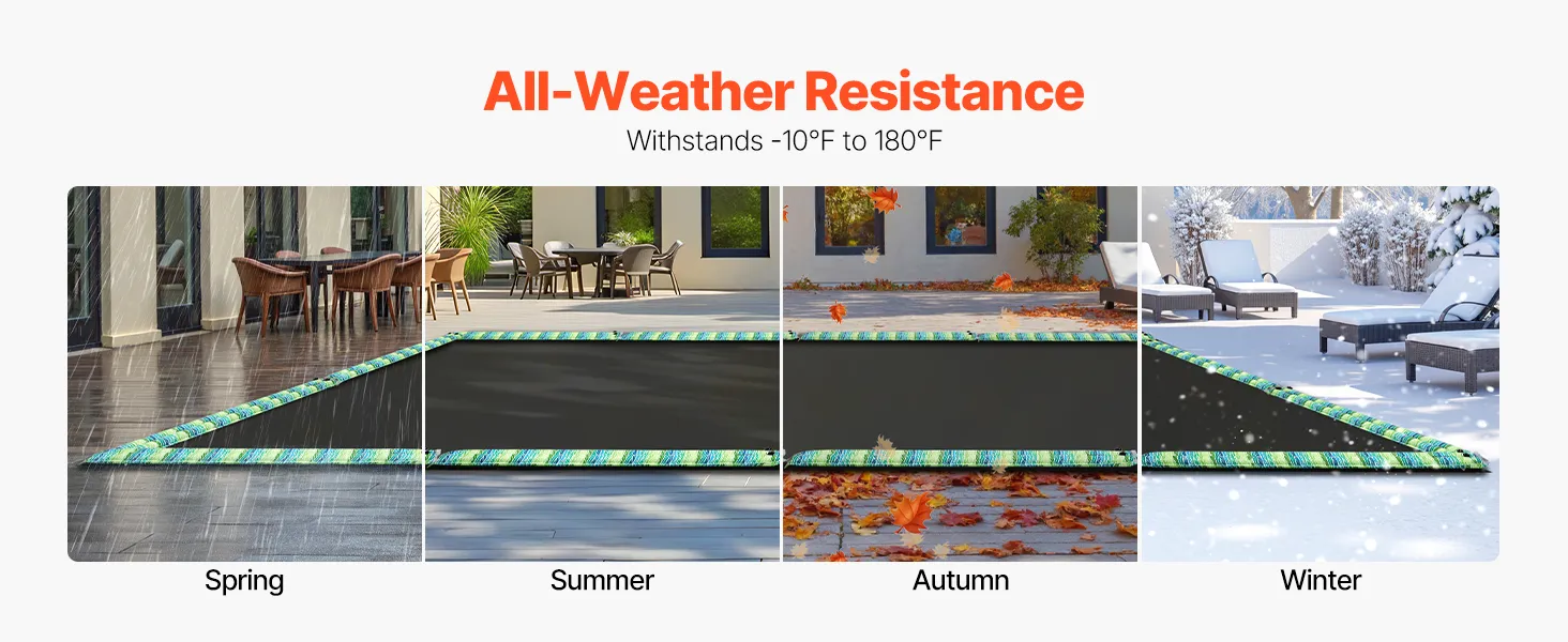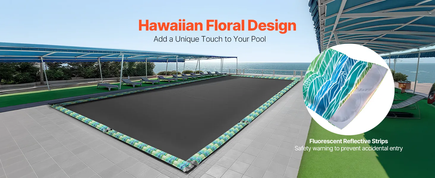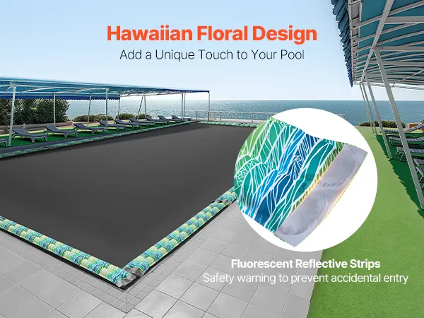 Our winter pool cover water bags feature tropical-inspired Hawaiian print adds a vibrant touch to your poolside decorations. Reflective strips at the corners provide high visibility at dusk or in low light, offering an added layer of safety around the pool.