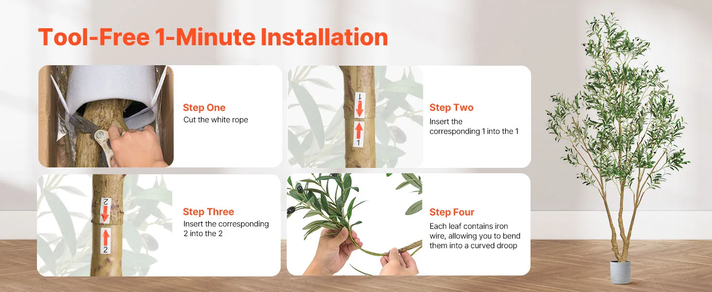 • Easy Maintenance Greenery: No watering, no pruning, no fading or wilting! This fake tree stays fresh and vibrant year-round. Just wipe with a damp cloth to keep it clean—enjoy the beauty of nature without the hassle of plant care