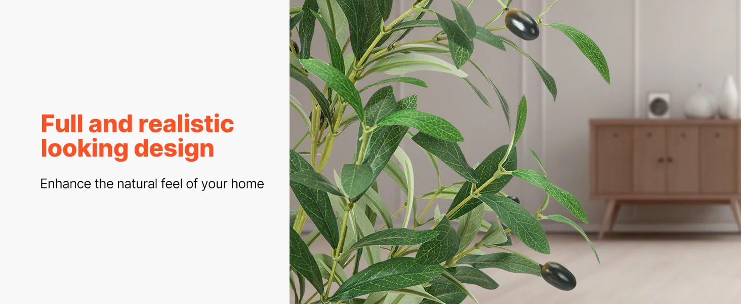 • Lifelike All-Season Design: This artificial olive tree features vibrant green leaves and lifelike fruits. Made of durable rubber silk fabric with detailed textures and rich colour, it brings year-round freshness to any home or commercial space
