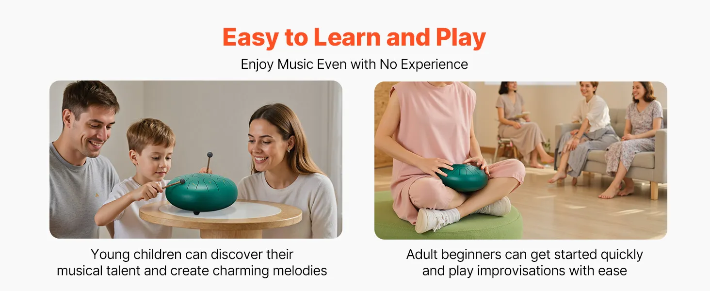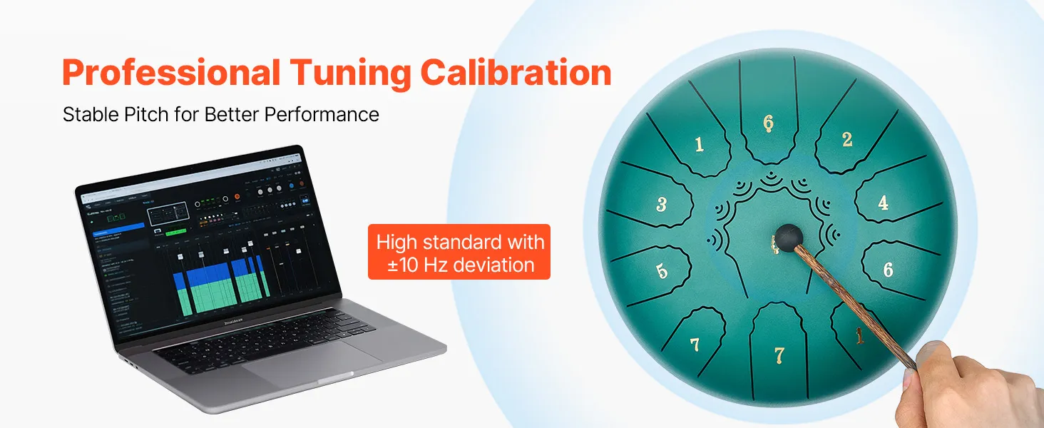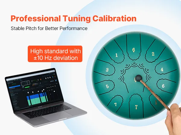 Our tongue drum is precisely tuned by professional tuners for accurate note. It ensures the played melody is harmonious and beautiful. Combined with premium materials, the pitch remains stable and is not easy to deviate with long-term use.